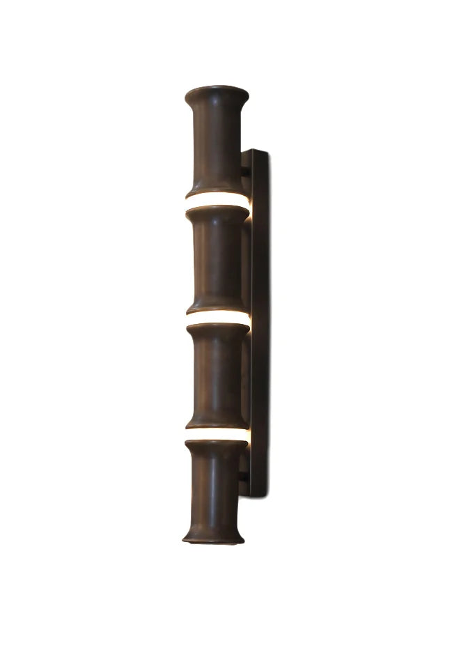 Ontdek de tijdloze elegantie van de Bamboo Wandlamp L uit The Grand Collection. Deze luxe wandlamp is uitgevoerd in een verfijnde antiek bronzen afwerking en voorzien van prachtige Spaanse albasten ringen, die een zacht en warm licht verspreiden. Het ontwerp, geïnspireerd op de natuurlijke vormen van bamboe, maakt deze lamp tot een echte eyecatcher aan de muur.
