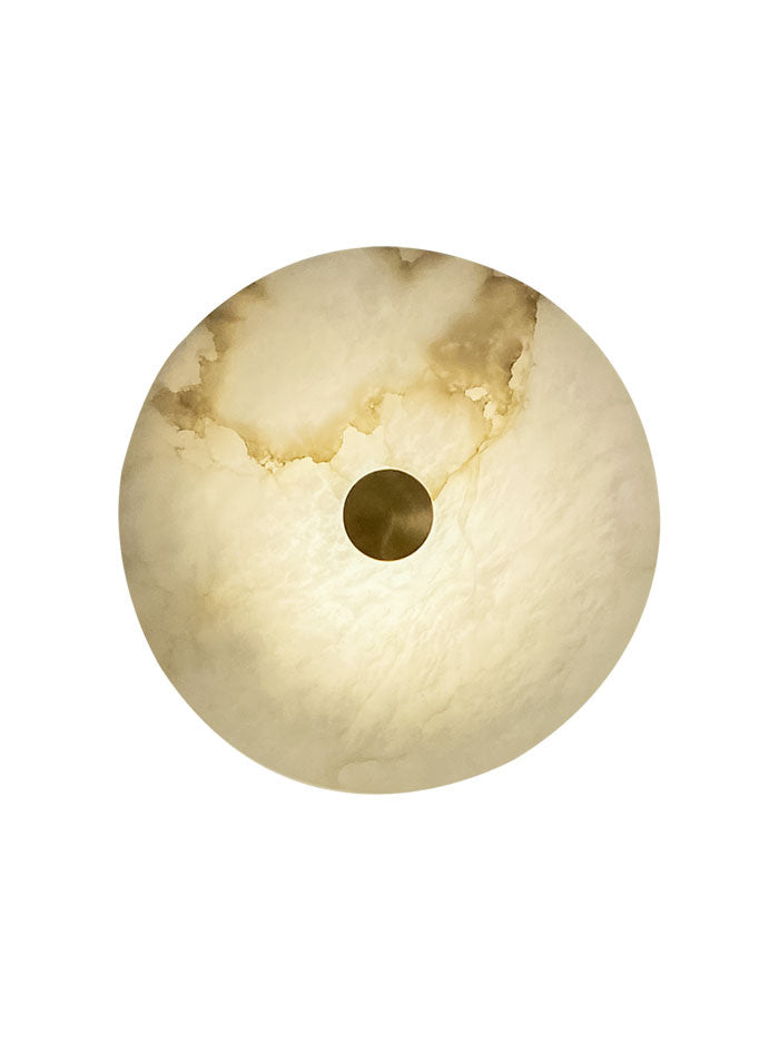 De Gino wandlamp van Maretti Lighting combineert elegantie met ambachtelijk vakmanschap. Gemaakt van Spaanse albast, heeft deze lamp een semi transparant karakter, waardoor het licht zacht en gelijkmatig wordt verspreid. Elke Gino heeft een unieke tekening, wat een exclusieve uitstraling garandeert. De geïntegreerde LED-verlichting biedt voornamelijk indirect licht via de wand, terwijl het albast een warme gloed doorlaat. Met een diameter van 30 cm en afgewerkt met messing, is de Gino een verfijnde keuze voor diverse ruimtes. Zijn veelzijdigheid maakt hem geschikt als wandlamp of plafonnière voor een stijlvol effect. Door de verschillende maten met elkaar te combineren creëer je een waar kunstwerk op de muur!