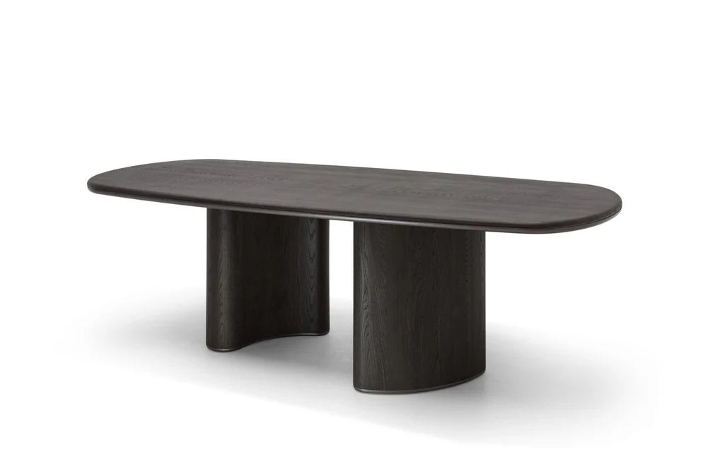 De GIULI eettafel van The Grand Collection is ontworpen om een ruimte te verankeren door middel van strakke geometrie en uitgebalanceerde proporties. Gemaakt van eikenhoutfineer en lak, afgewerkt in black oiled eiken - champagne. Afmetingen: L 240 cm × B 110 cm × H 75 cm.