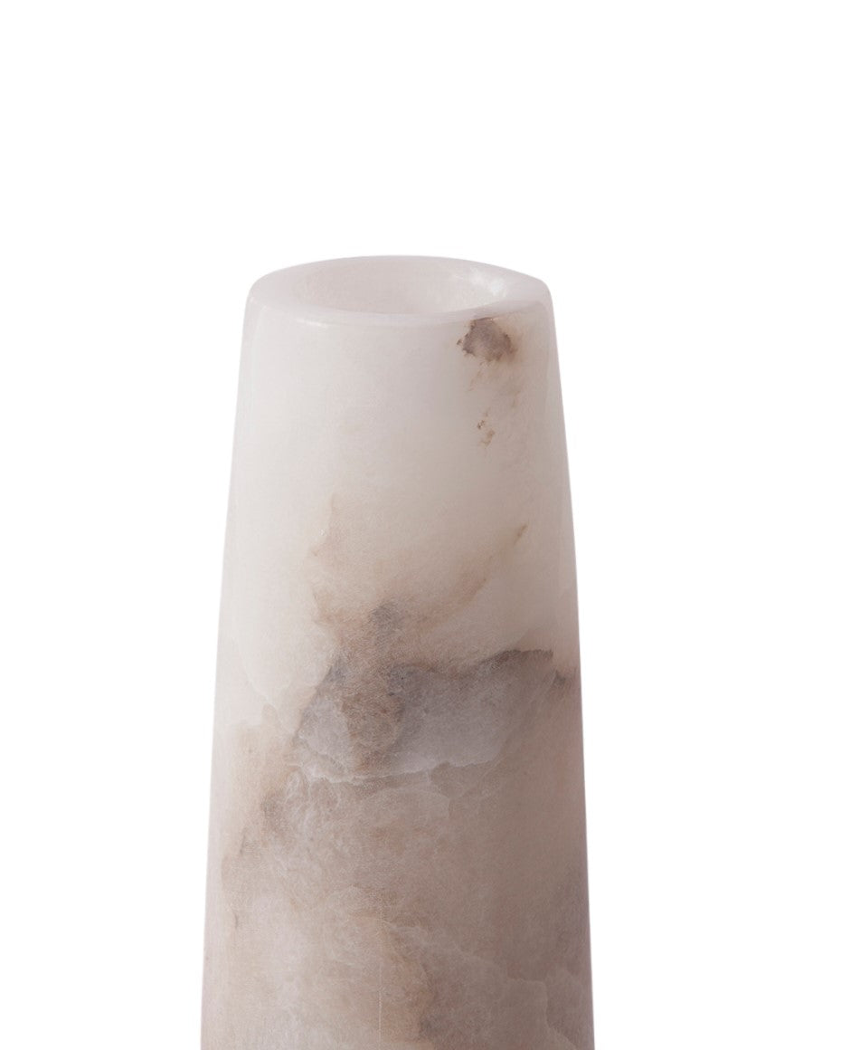 De Oliva vazen van Raf Deluxe, zijn gemaakt uit alabaster in een matte finish. Een luxe en opvallende vaas. Een eye catcher in het interieur, door de uitstraling van het alabaster in combinatie met het organische taps toelopende design.