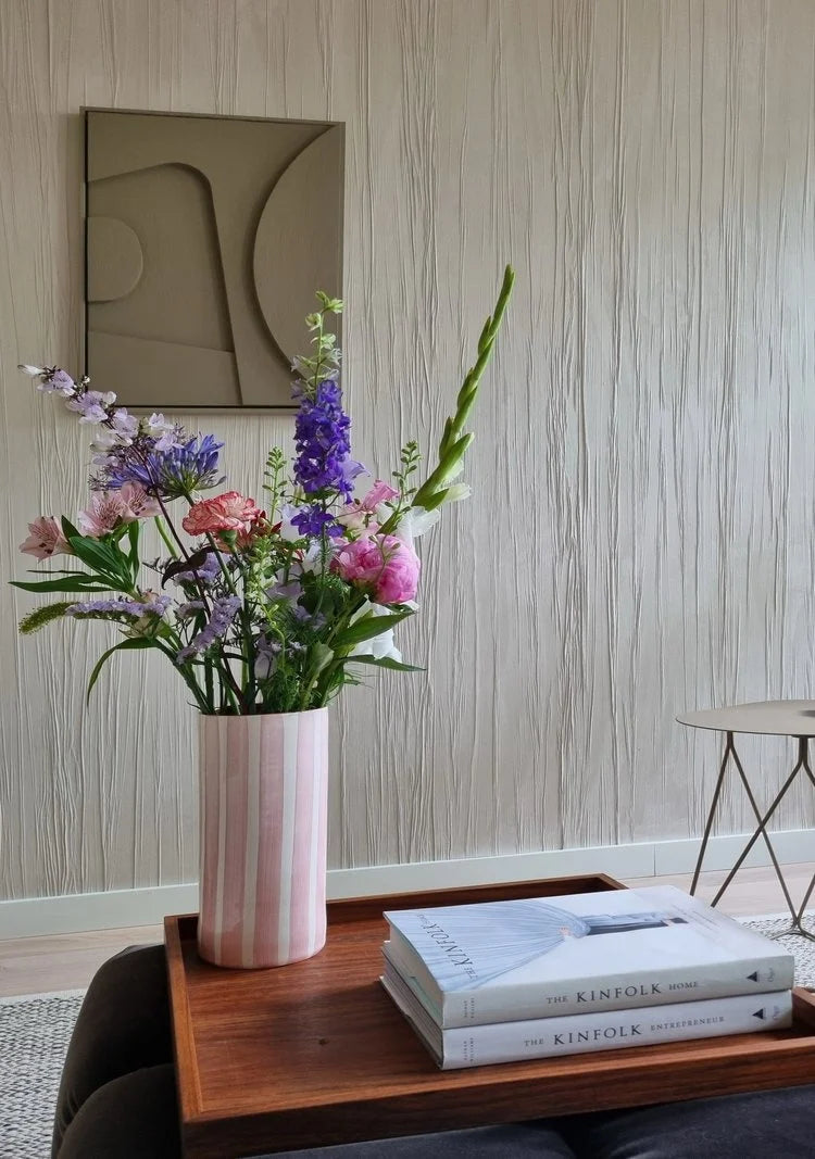 Het Santos-behang kan zich aanpassen aan de aard van elke ruimte, klassiek of eigentijds. De zachte en warme look is ideaal om met groot gemak een huiselijke esthetiek te creëren. Met zijn verfijnde plooien zorgt het voor meer levendigheid en installeert het een stemming die het leven in al zijn rijkdom omarmt.