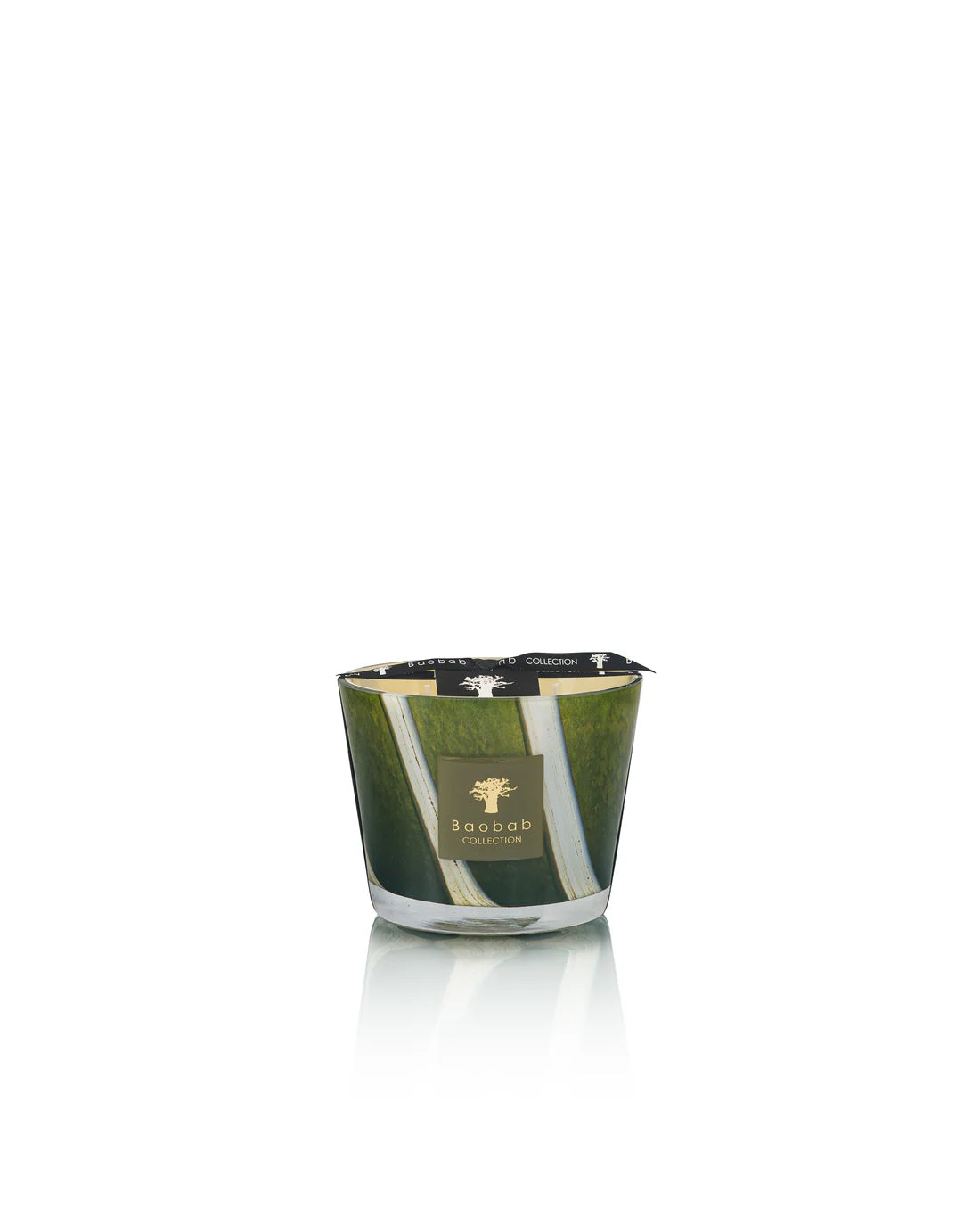 Breng de magie van Sherwood Forest in huis met de exclusieve Sherwood geurkaars. Het elegante glas is versierd met verticale lijnen die doen denken aan majestueuze boomstammen die naar de hemel reiken. De diepe groentinten met subtiele schakeringen van bruin en geel vangen prachtig het licht en zorgen voor een betoverende uitstraling in ieder interieur.