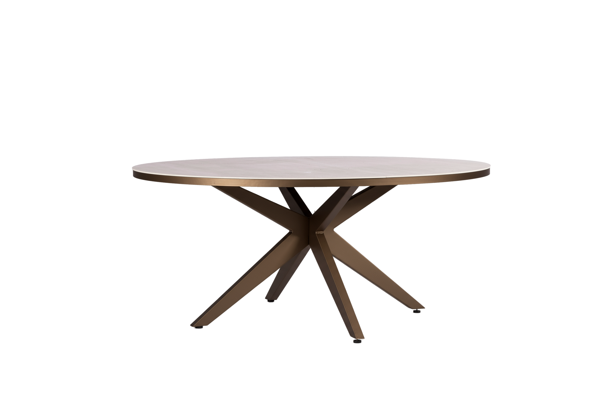 Met een diameter van 160 centimeter biedt de Calma Dining Table voldoende ruimte om comfortabel samen te komen. Een elegante tafel die moeiteloos aansluit bij diverse diningstoelen en de verfijnde sfeer van een stijlvolle buitenomgeving versterkt.