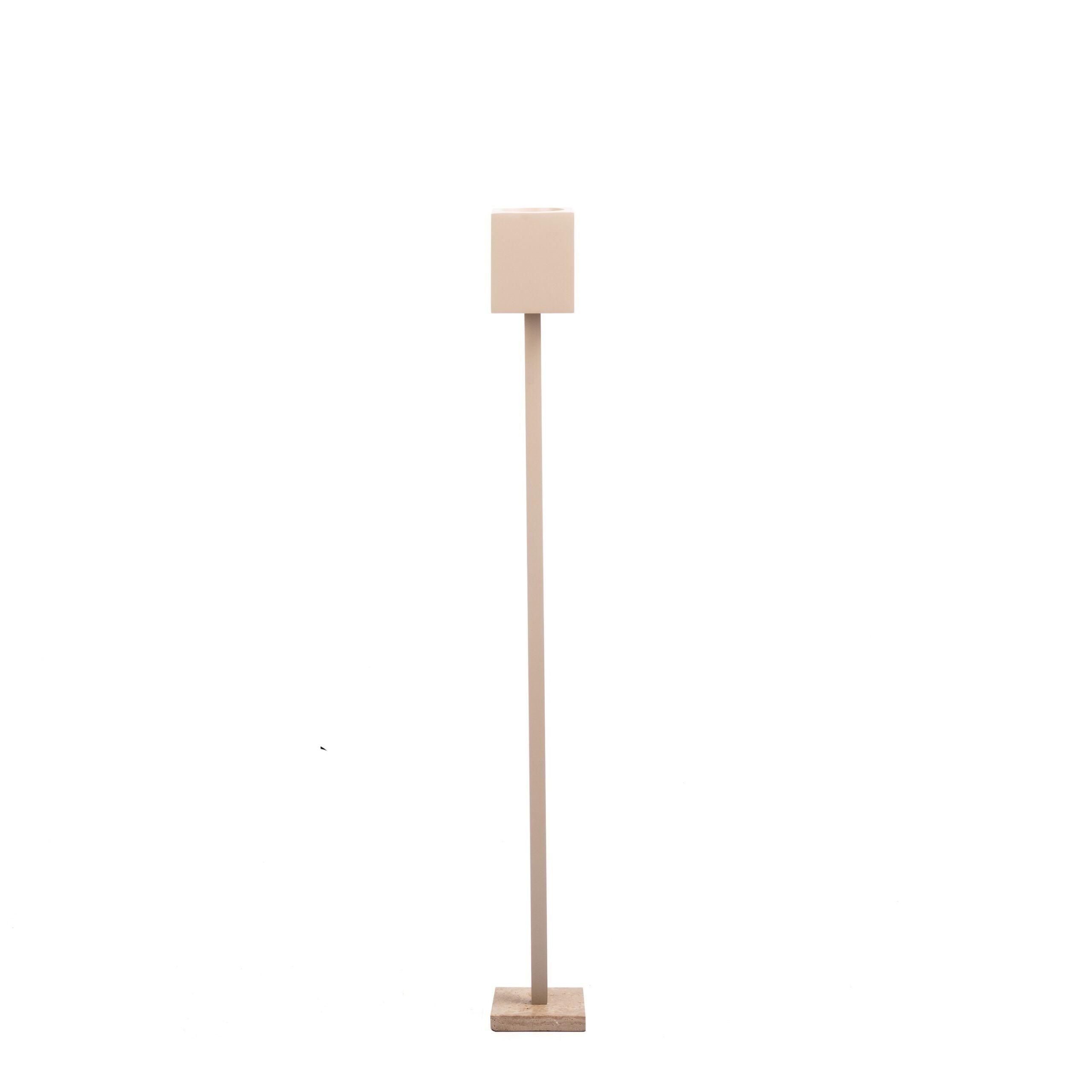 De Farra vloerkandelaar van Ref Deluxe is gemaakt van aluminium in een zachte en ingetogen beige kleurtint, die het travertin voetstuk mooi complimenteert. Stijlvol en uniek, maken deze kandelaren een statement in elk interieur.