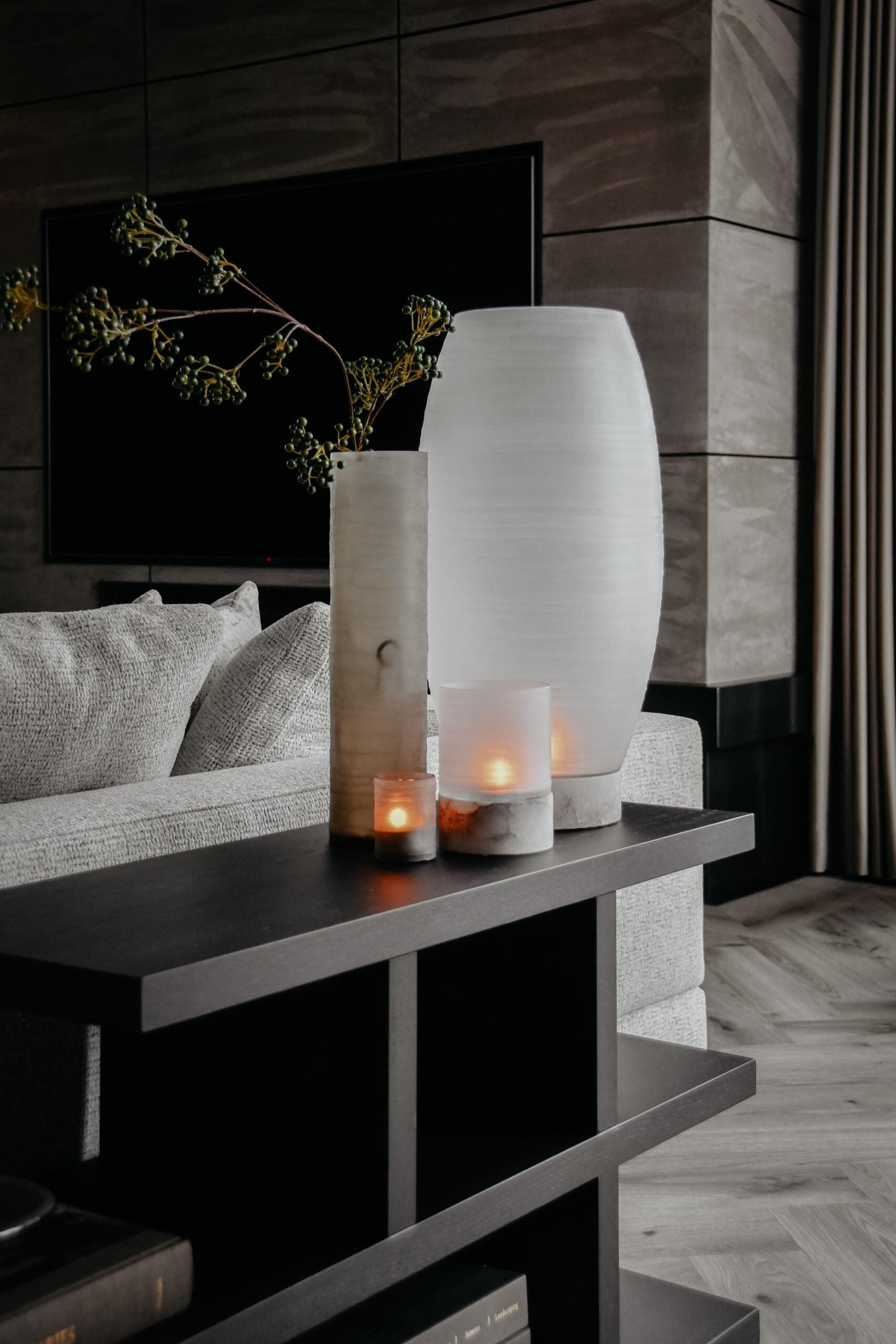 De Ona vaas is mooi op zichzelf, maar kan ook prachtige gecombineerd worden als set of met de Kalle – Smoke windlichten