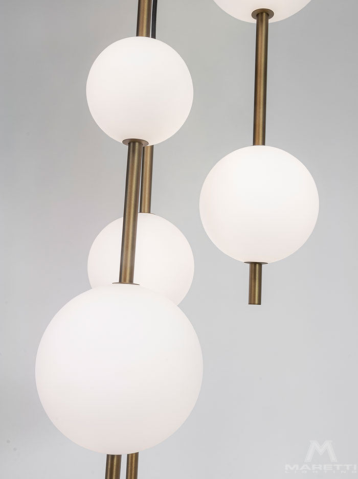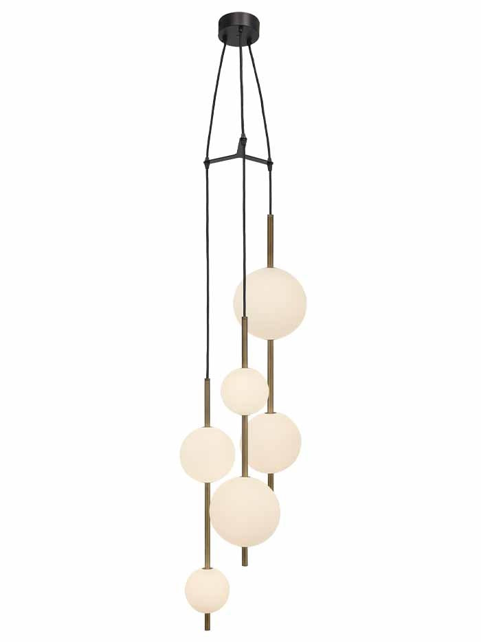 De Pearl 3-lichts hanglamp van Maretti Lighting is ontworpen door Herman Peters. Deze unieke hanglamp met drie pendels en zes opalen bollen van verschillende maten op diverse hoogtes per pendel. De bronzen afwerking van de pendels en het luxe stoffen snoer geven een tijdloze uitstraling. De lamp is dimbaar met fase aan- en afsnijding, waardoor u de lichtintensiteit naar wens kunt aanpassen. De kleine plafondbak met spreader zorgt ervoor dat de pendels verder uit elkaar hangen. De Pearl lampen zijn een kunstwerk die zowel aan als uit een genot zijn om te zien.